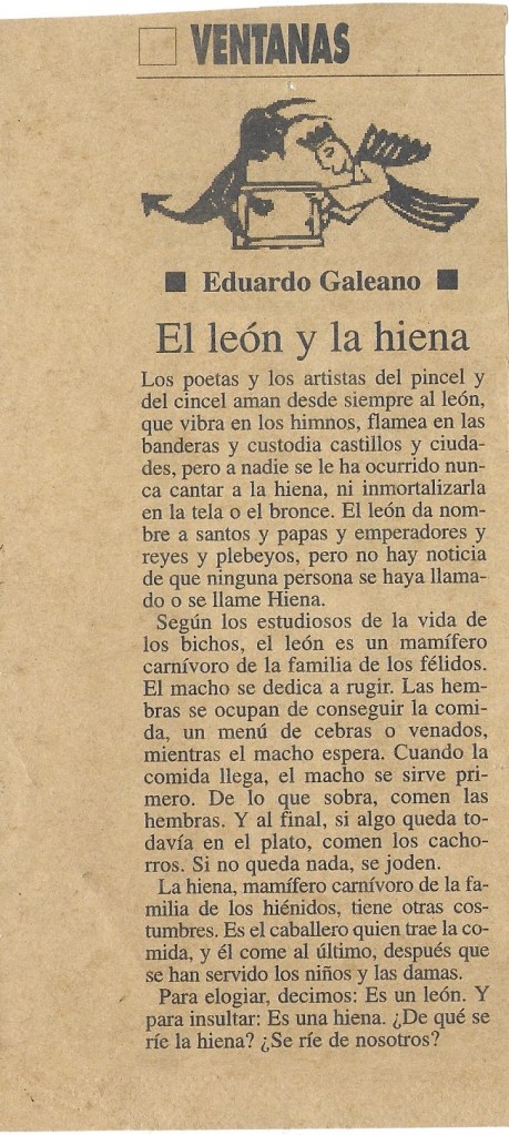 Recorte de Eduardo Galeano circa 2000 El león y la hiena